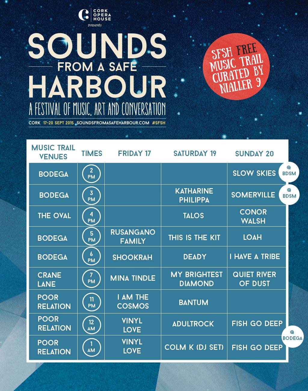 Sounds From A Safe Harbour music trail stage times